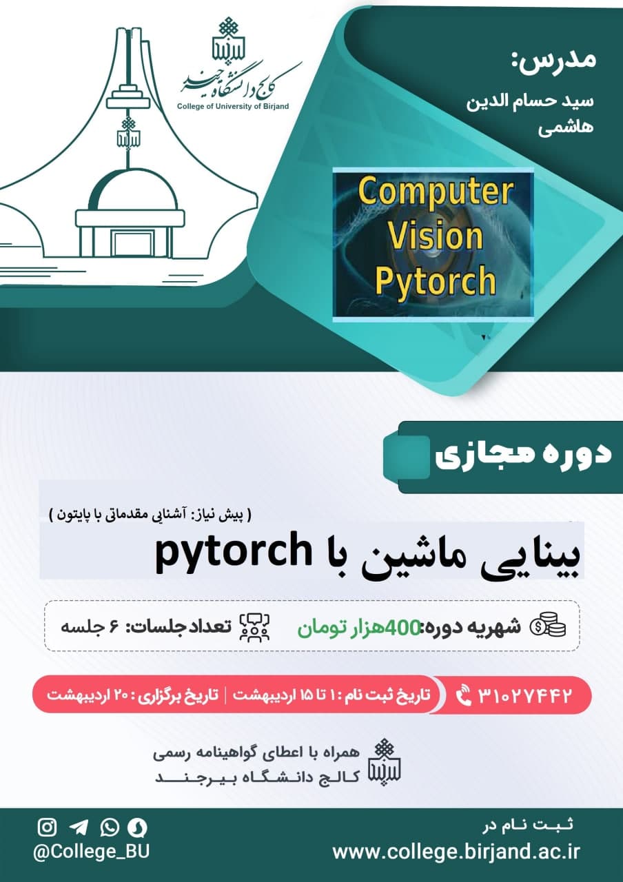 دوره آموزش مجازی بینایی ماشین با pytorch ۰۴ اردیبهشت ۱۴۰۲ | ۱۳:۰۴ کد : ۲۳۵۳۲ اطلاعیه ها ارسال به دیگران نام شما ایمیل شما ایمیل دریافتکننده ارسال انصراف تعداد بازدید:۴۰۹۱