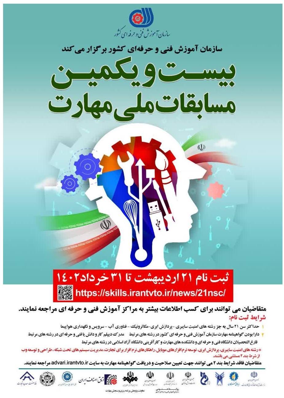 بیست و یکمین دوره مسابقات ملی مهارت توسط سازمان آموزش فنی و حرفه ای کشور برگزار می‌گردد.