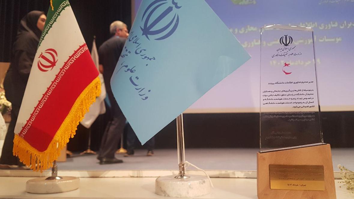 به گزارش روابط عمومی و اطلاع‌رسانی دانشگاه بیرجند به نقل از روابط عمومی وزارت علوم، در بخشی از نخستین همایش مدیران فناوری اطلاعات و مراکز آپای دانشگاههای کشور که روز دوشنبه ۲۹ خرداد ۱۴۰۲ در دانشگاه الزهرا (س) برگزار شد از دانشگاه بیرجند که به پنچره خدمات دانشگاهی متصل شده است با حضور وزیر علوم، معاون اداری، مالی و مدیریت منابع وزارت علوم تجلیل شد.