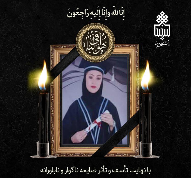 با نهایت تأسف و تأثر ضایعه ناگوار و ناباورانه درگذشت ناگهانی دانشجوی گرامی مرحومه مغفوره شادروان