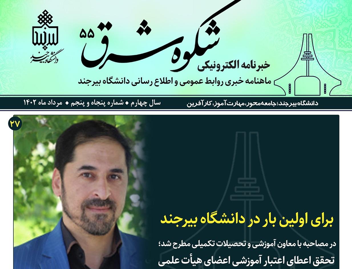 انتشار پنجاه و پنجمین خبرنامه شکوه شرق دانشگاه بیرجند ۰۱ شهریور ۱۴۰۲ | ۱۱:۴۵ کد : ۲۴۸۹۸ اخبار برگزیده خبرنامه شکوه شرق ارسال به دیگران نام شما ایمیل شما ایمیل دریافتکننده ارسال انصراف تعداد بازدید:۵۴۲۸ پنجاه و پنجمین خبرنامه شکوه شرق به همت روابط عمومی و اطلاعرسانی دانشگاه بیرجند ویژه مردادماه ۱۴۰۲ منتشر شد.