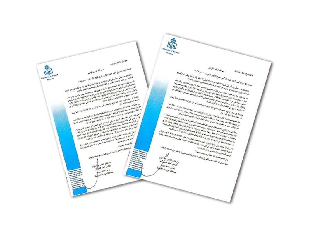 نامه رئیس دانشگاه بیرجند به شیخ الازهر در خصوص محکومیت جنایات رژیم غاصب صهیونیستی در غزه و کمک به رفع محاصره