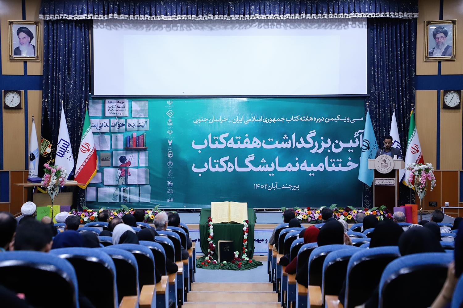 به گزارش روابط عمومی و اطلاع رسانی دانشگاه بیرجند، همزمان با سی و یکمین دوره هفته کتاب جمهوری اسلامی ایران، آیین بزرگداشت هفته کتاب و مراسم اختتامیه نمایشگاه کتاب دانشگاه بیرجند، چهارشنبه 24 آبان‌ماه 1402 در تالار ولایت دانشگاه برگزار شد.