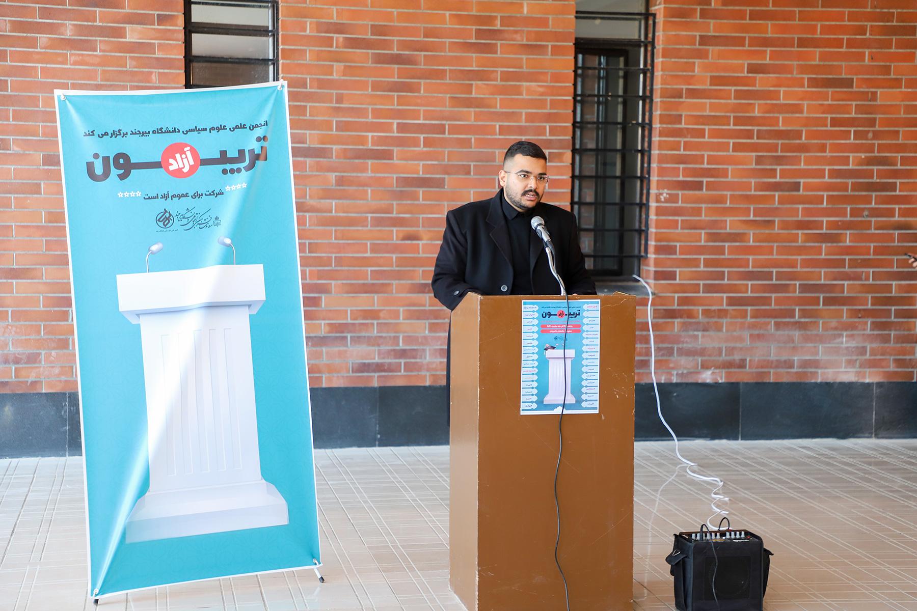 به گزارش روابط عمومی و اطلاع‌رسانی دانشگاه بیرجند، تریبون آزاد دانشجویی به همت انجمن علوم سیاسی به مناسبت روز دانشجو  و در حاشیه برگزاری هفته فرهنگ دانشگاهی، روز یکشنبه 19 آذر  1402 با حضور  بیش از 100 دانشجو در محوطه دانشکده ادبیات و علوم انسانی برگزار شد.