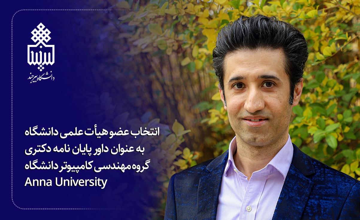 انتخاب عضو هیأت علمی دانشگاه به عنوان داور پایان نامه دکتری گروه مهندسی کامپیوتر دانشگاه Anna University