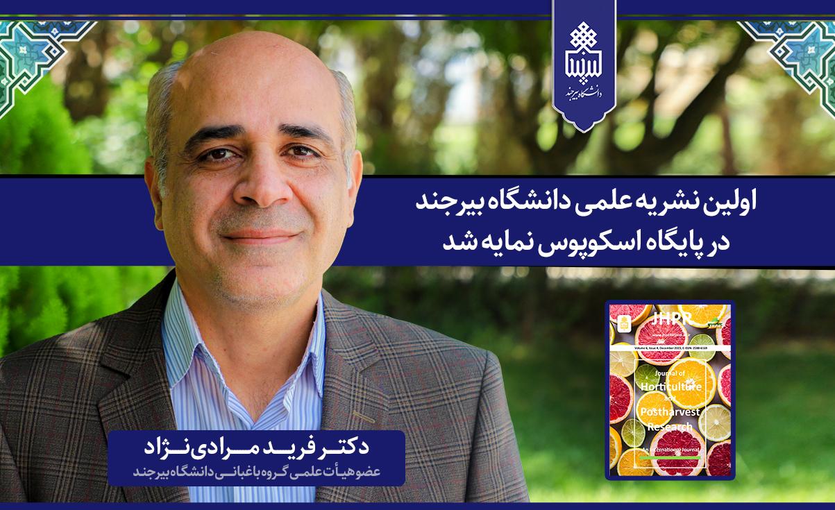 به گزارش روابط عمومی و اطلاعرسانی دانشگاه بیرجند، دکتر فرید مرادینژاد افزود: این نشریه با عنوان (Journal of Horticulture and Postharvest Research) و با تلاش و پیگیریهای مستمر به عنوان اولین نشریه از نشریات علمی دانشگاه بیرجند همچنین نشریات دانشگاهها و مراکز پژوهشی استان خراسان جنوبی است که موفق به اخذ نمایه بینالمللی Scopus شد.