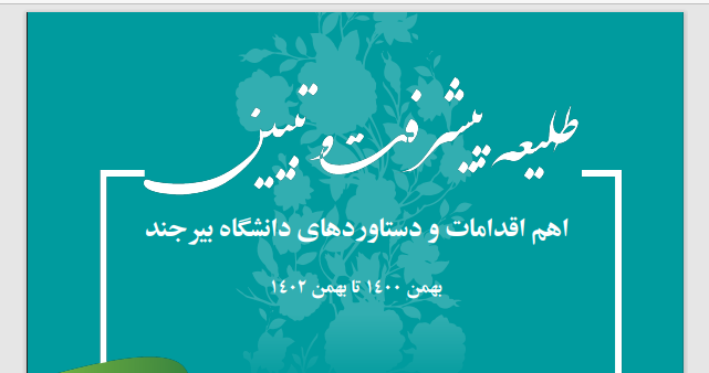 گزارش اهم اقدامات و دستاوردهای دانشگاه بیرجند از بهمن ۱۴۰۰ تا بهمن ۱۴۰۲ ۲۵ بهمن ۱۴۰۲ | ۱۴:۳۸ کد : ۲۷۰۱۶ اخبار برگزیده ارسال به دیگران نام شما ایمیل شما ایمیل دریافتکننده ارسال انصراف تعداد بازدید:۴۱۹۵ گزارش اهم اقدامات و دستاوردهای دانشگاه بیرجند از بهمن ماه ۱۴۰۰ لغایت بهمن ماه ۱۴۰۲