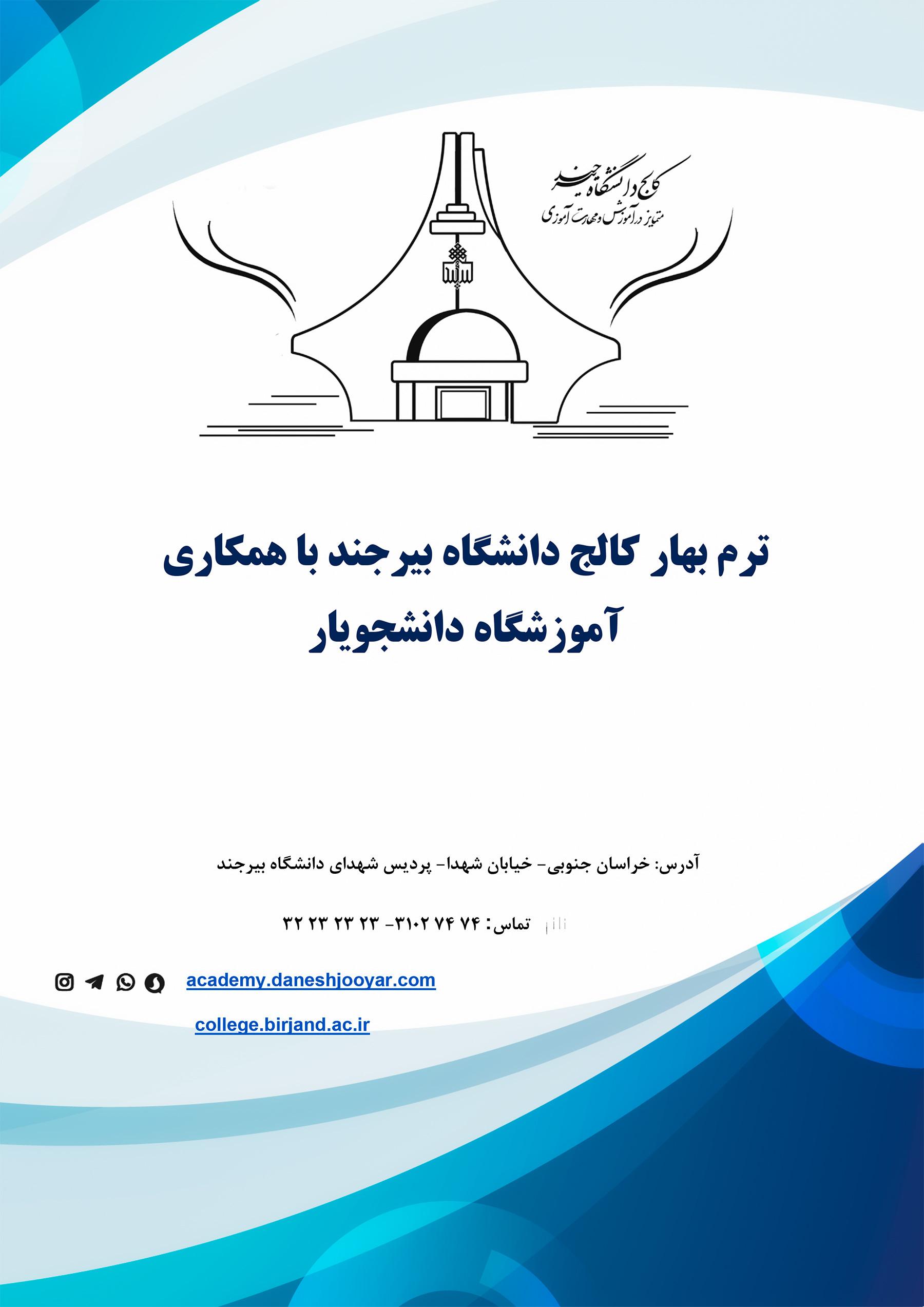 ترم بهار کالج دانشگاه بیرجند با همکاری آموزشگاه دانشجویار ۰۲ اردیبهشت ۱۴۰۳ | ۱۱:۴۱ کد : ۲۷۴۲۸ اطلاعیه ها ارسال به دیگران نام شما ایمیل شما ایمیل دریافتکننده ارسال انصراف تعداد بازدید:۳۹۱۸
