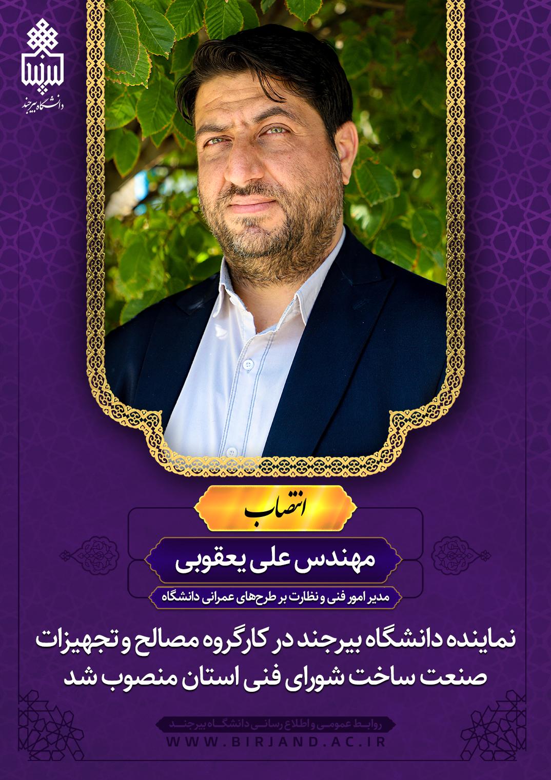 در این ابلاغ آمده است؛ با عنایت به معرفی نامه رئیس محترم دانشگاه بیرجند، جنابعالی به مدت دو سال به عنوان نماینده دانشگاه بیرجند در کارگروه مصالح و تجهیزات صنعت ساخت شورای فنی استان منصوب میگردید. امید است با حضور فعال در برنامههای کارگروه مذکور نقش مؤثری در راستای تحقق اهداف شورای فنی استان ایفا نمایید.