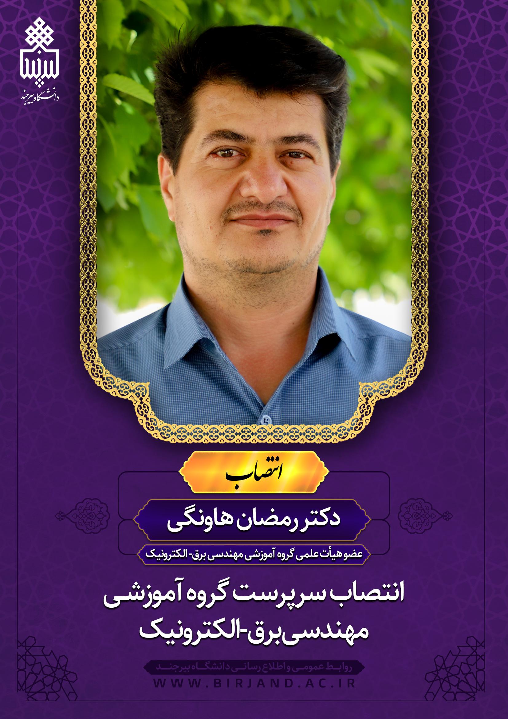 به گزارش روابط عمومی و اطلاعرسانی دانشگاه بیرجند، در متن این حکم انتصاب آمده است؛ نظر به مراتب تعهد، تجارب و شایســـتگیهای علمی و اجرایی جنابعالی، به مـوجب این ابلاغ و با حفظ سمت آموزشی و پژوهشــی، به عنوان سرپرست گروه آموزشـی مهندسی برق-الکترونیک منصوب میشوید. مقتضـی است ضــمن مطالعه