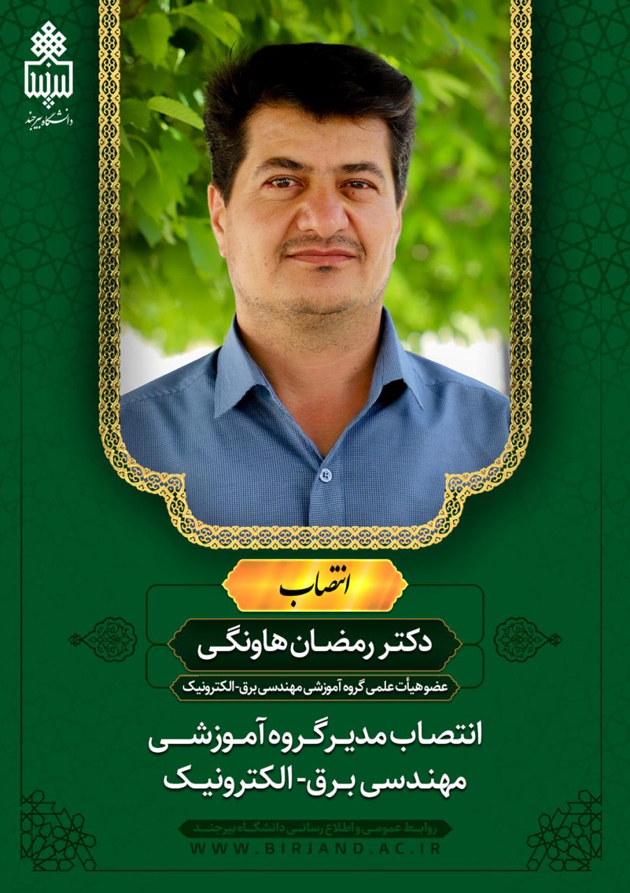 دکتر رمضان هاونگی، عضو هیأت علمی گروه آموزشی مهندسی برق- الکترونیک است. وی در سال 1397 مدرک دکتری تخصصی خود را در رشته برق- کنترل از دانشگاه صنعتی خواجه نصرالدین طوسی کسب کرد.