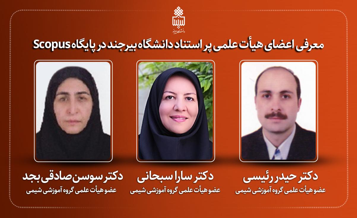 به گزارش روابط عمومی دانشگاه بیرجند، پر استنادترین اعضای هیأت علمی دانشگاه بیرجند در پایگاه Scopus به شرح زیر معرفی میشوند: