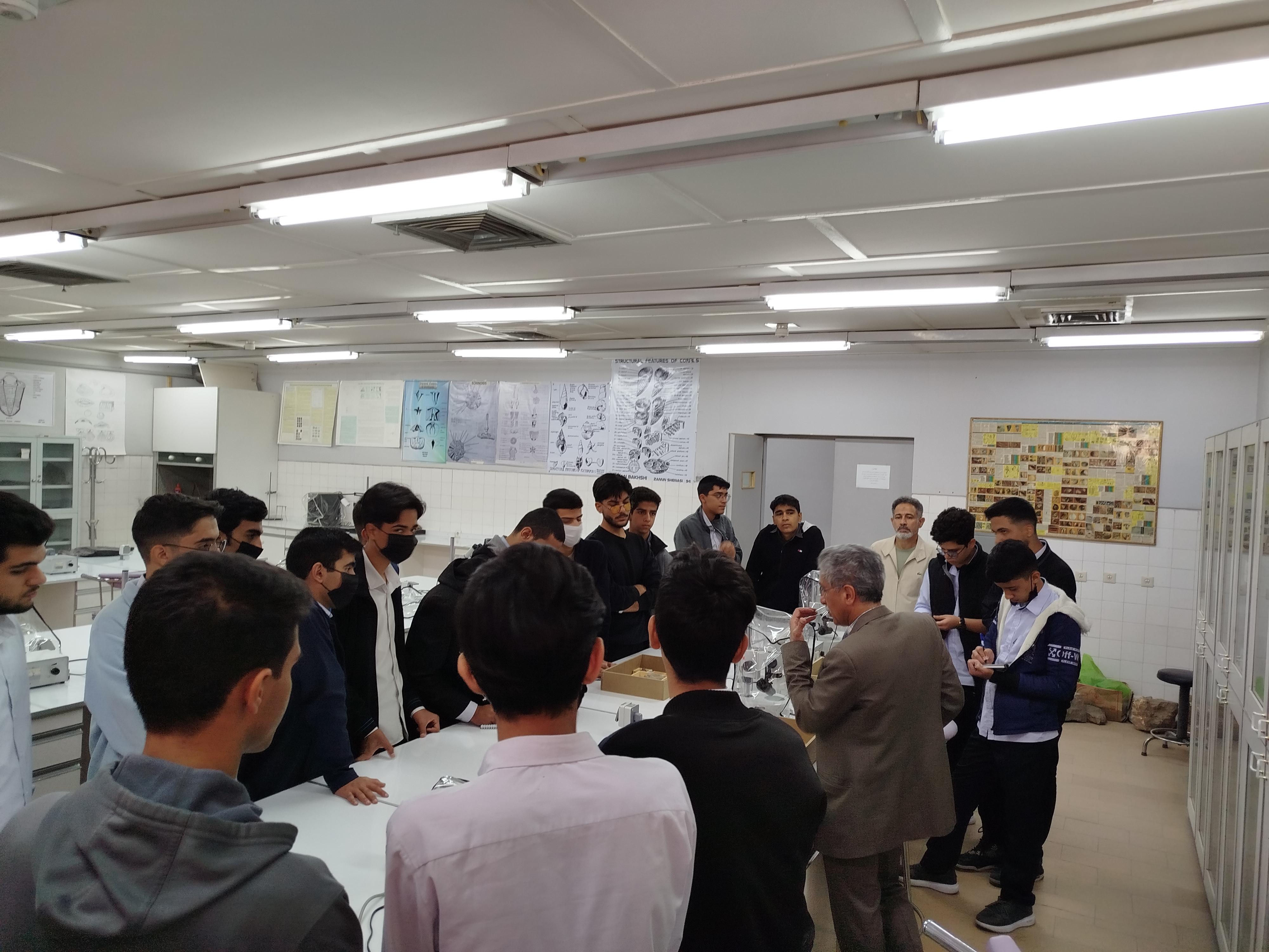 بهمنظور جذب بیشتر دانشآموزان به رشته زمینشناسی، دکتر یوسفزاده، استادیار گروه زمینشناسی، و دکتر رئیسالسادات با همکاری کارشناسان گروه زمینشناسی، توضیحاتی در خصوص سنگها و کانیها ارائه کردند. دانشآموزان نیز از آزمایشگاههای مختلف گروه زمینشناسی بازدید کردند و با تجهیزات و فعالیتهای علمی آشنا شدند.