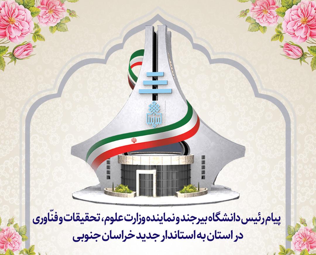 پیام رئیس دانشگاه بیرجند و نماینده وزارت علوم، تحقیقات و فنّاوری در استان به استاندار جدید خراسان جنوبی
