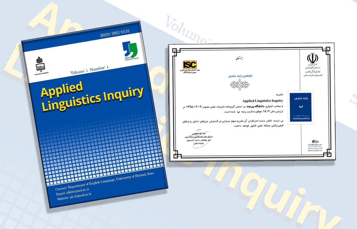 کسب رتبه علمی "ب" نشریه Applied Linguistics Inquiry در ارزیابی وزارت علوم، تحقیقات و فناوری