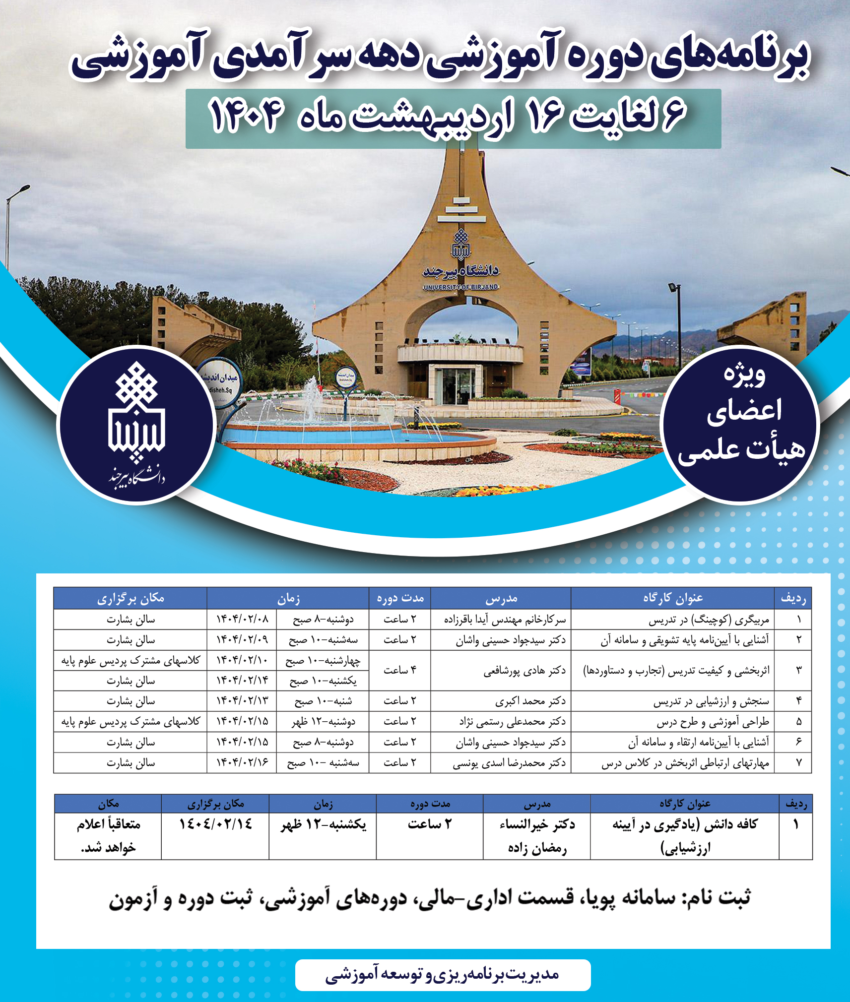 عناوین برنامههای دوره آموزشی دهه سرآمدی آموزشی سال ۱۴۰۴ (ویژه اعضای هیأت علمی) ۰۷ اردیبهشت ۱۴۰۴ | ۱۳:۱۸ کد : ۳۰۶۴۱ اطلاعیه ها اطلاعیه های مهم اخبار اساتید ارسال به دیگران نام شما ایمیل شما ایمیل دریافتکننده ارسال انصراف تعداد بازدید:۳۱۳۴