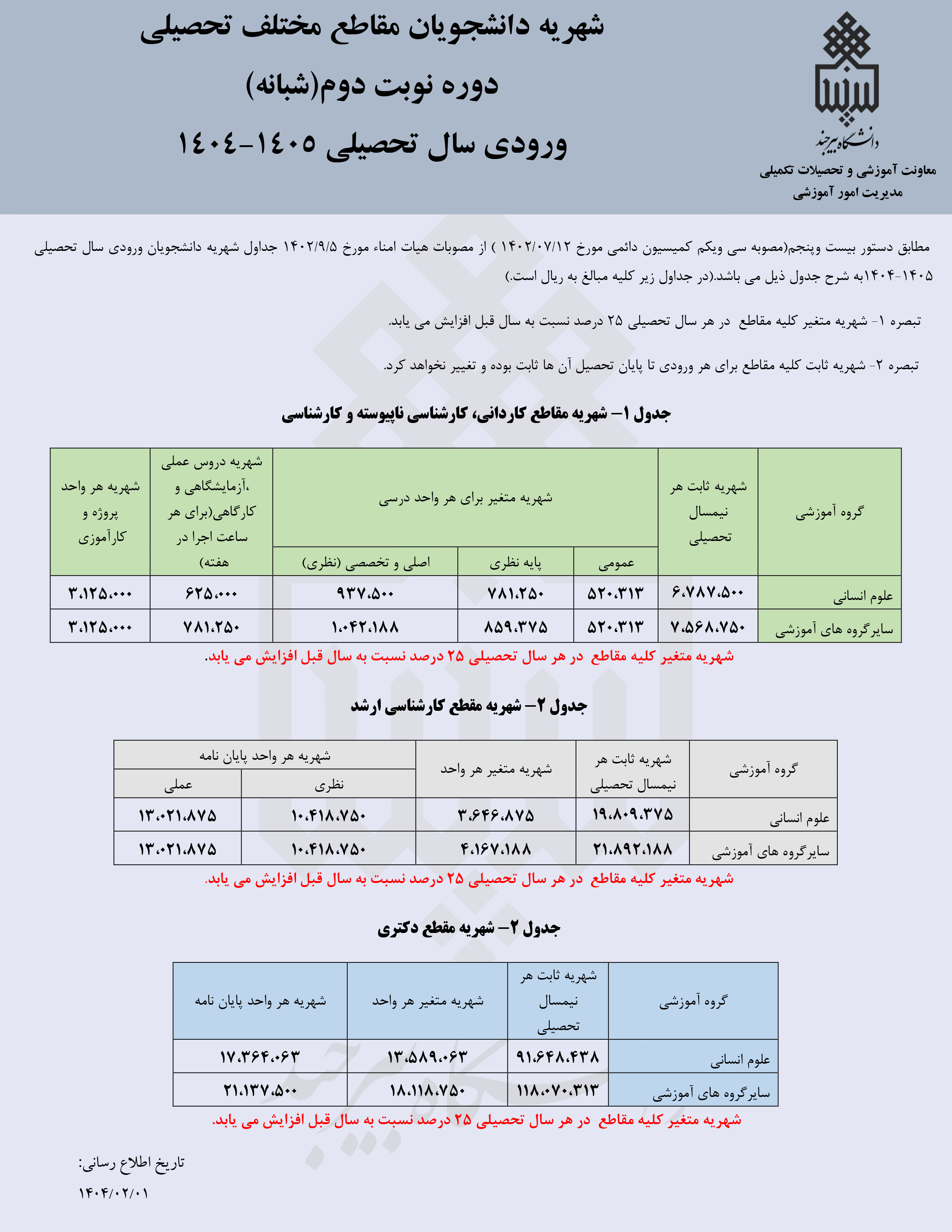 شهریه دانشجویان مقاطع مختلف تحصیلی دوره نوبت دوم(شبانه) ورودی سال تحصیلی ۱۴۰۴ ـ۱۴۰۵ ۱۳ خرداد ۱۴۰۴ | ۰۹:۴۳ کد : ۳۱۱۵۳ اطلاعیه ها ارسال به دیگران نام شما ایمیل شما ایمیل دریافتکننده ارسال انصراف تعداد بازدید:۲۵۵۸