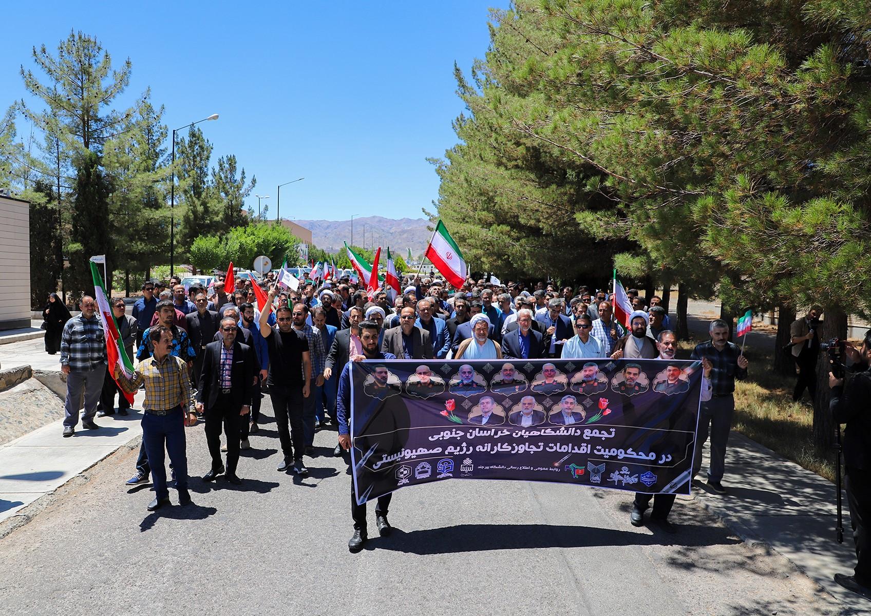 دانشگاهیان خراسان جنوبی در این مراسم اقدامات وحشیانه رژیم صهیونیستی در به شهادت رساندن جمعی از دانشمندان هستهای، دانشگاهیان و اساتید و فرماندهان نظامی و مردم و کودکان بیگناه میهن اسلامی را محکوم کردند.