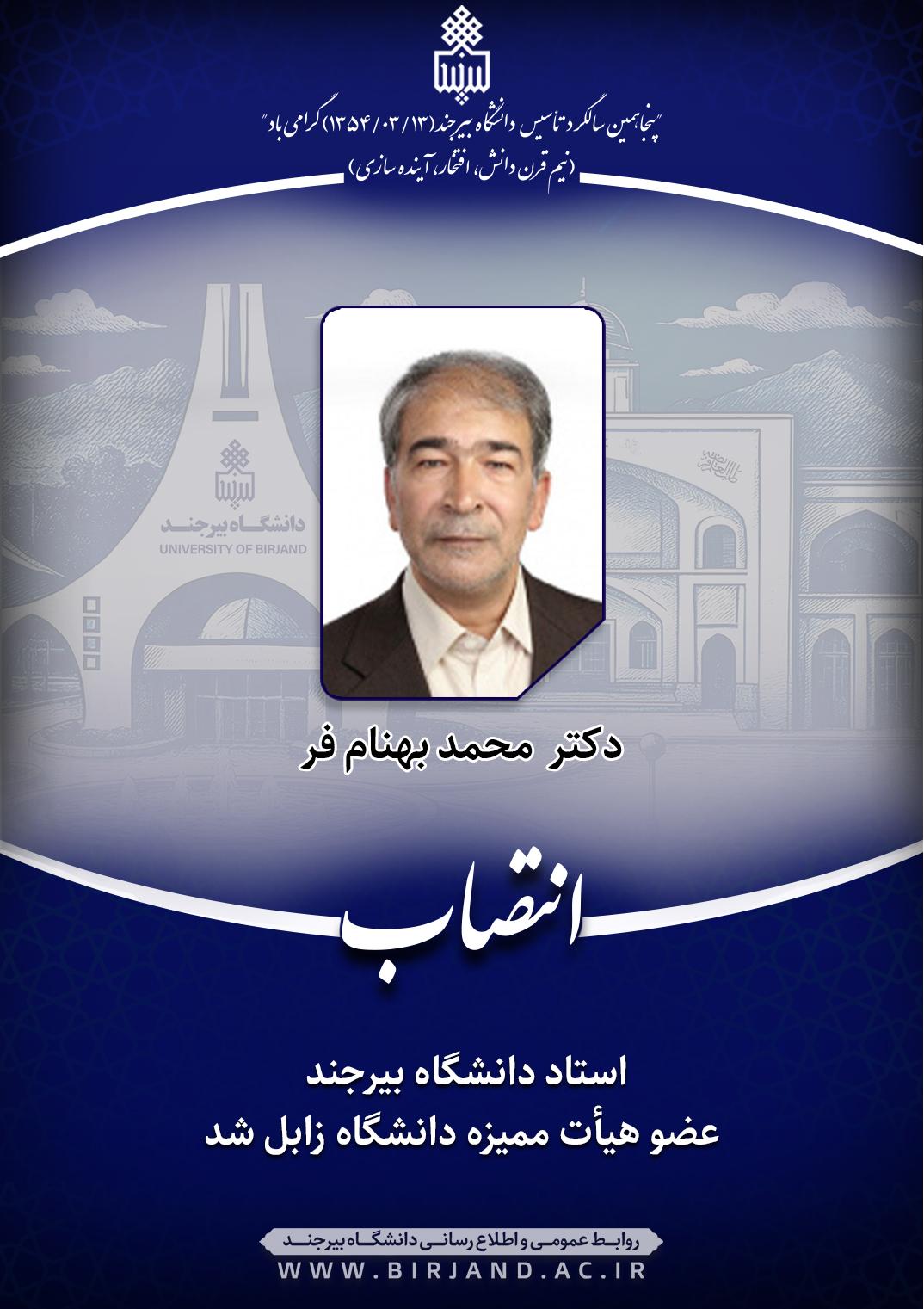 به گزارش روابط عمومی و اطلاعرسانی دانشگاه بیرجند، طی حکمی از سوی دکتر حسین سیمایی وزیر علوم، تحقیقات و فناوری، دکتر محمد بهنامفر، استاد رشته زبان و ادبیات فارسی دانشگاه بیرجند، به عضویت هیأت ممیزه دانشگاه زابل درآمد.