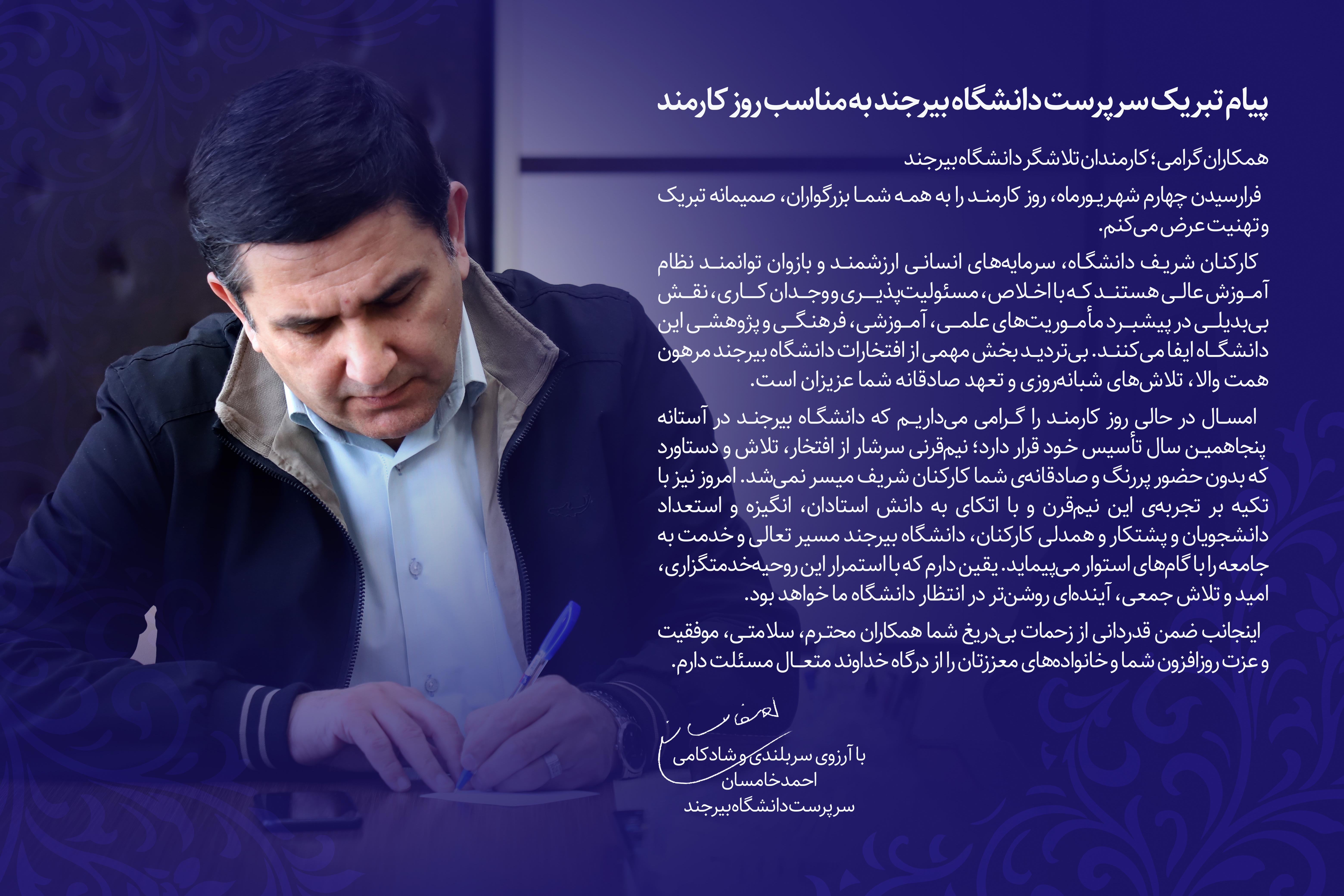 پیام تبریک سرپرست دانشگاه بیرجند به مناسب روز کارمند