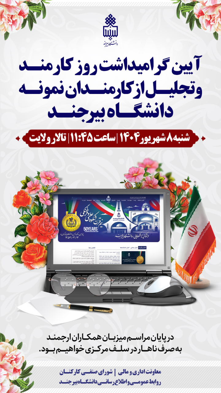 آیین گرامیداشت روز کارمند و تجلیل از کارمندان نمونه دانشگاه بیرجند ۰۵ شهریور ۱۴۰۴ | ۰۸:۳۵ کد : ۳۱۶۲۴ اطلاعیه ها اخبار کارکنان ارسال به دیگران نام شما ایمیل شما ایمیل دریافتکننده ارسال انصراف تعداد بازدید:۱۹۹۳