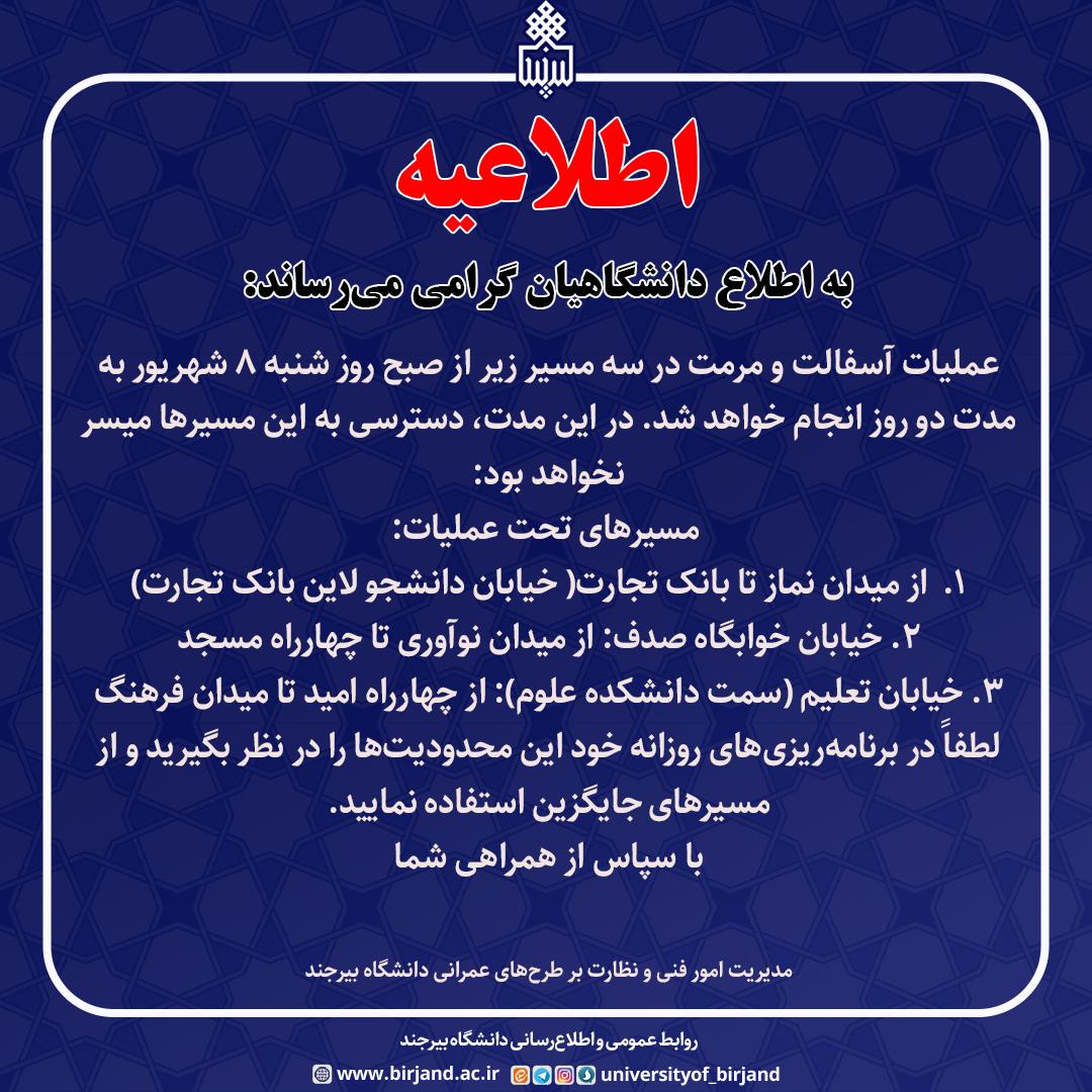 به اطلاع دانشگاهیان گرامی می‌رساند: