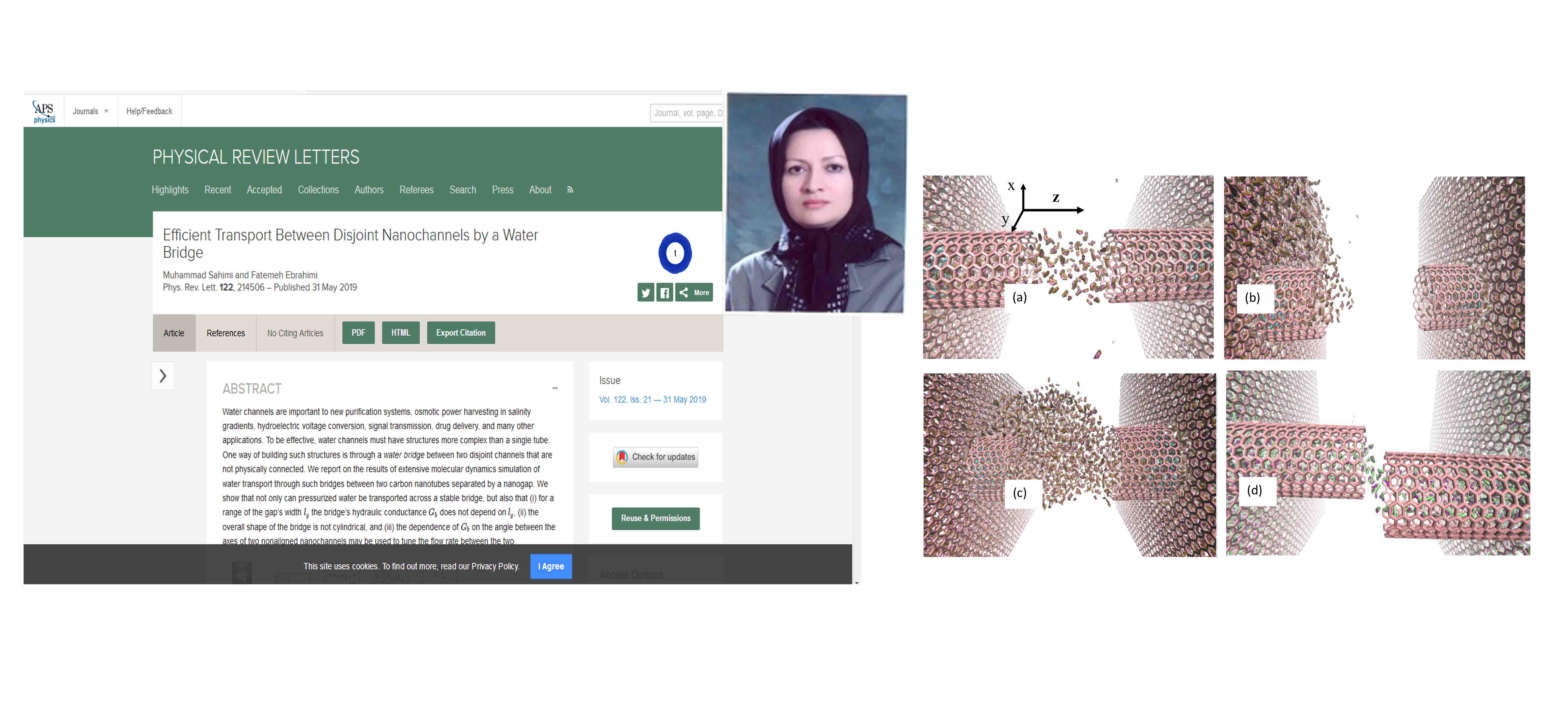 به گزارش روابط عمومی دانشگاه بیرجند، پژوهش مشترک دکتر فاطمه ابرهیمی عضو هیات علمی گروه فیزیک دانشگاه بیرجند با پرفسور محمد سهیمی استاد دانشگاه کالیفرنیای جنوبی (USC)کشور آمریکا به چاپ مقاله ای با عنوان ترابرد مؤثر بین دو نانو کانال جداگان بوسیله پل آبی: