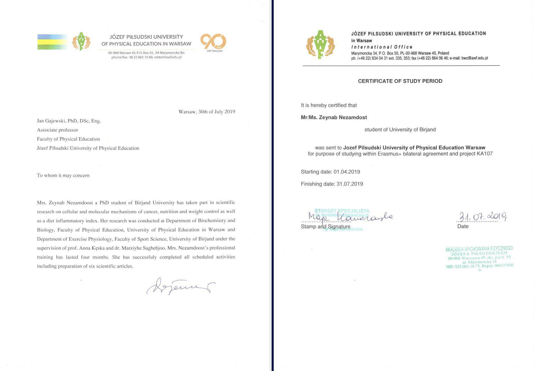 به گزارش روابط عمومی دانشگاه بیرجند، زینب نظام دوست دانشجوی دوره دکتری دانشگاه که بر اساس قرارداد دانشگاه بیرجند با دانشگاه علوم ورزشی ورشوی لهستان در قالب برنامه اراسموس + به این دانشگاه اعزام شده بود، با به پایان رسیدن دوره تحقیقاتی خود به دانشگاه بیرجند بازگشت.