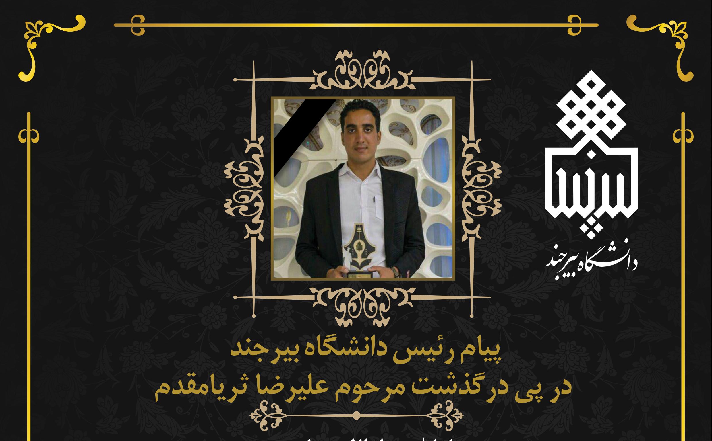 حادثه تأسف برانگیز و جانسوز درگذشت دانشجوی با اخلاق و گرانقدر مرحوم علیرضا ثریامقدم، جامعه دانشگاه بیرجند را بسیار اندوهگین و داغدار کرد.