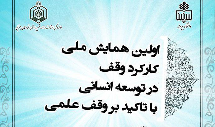 اولین همایش ملی کارکرد وقف در توسعه انسانی با تأکید بر وقف علمی ۲۱ آبان ۱۳۹۸ در دانشگاه بیرجند برگزار می‌شود.‏