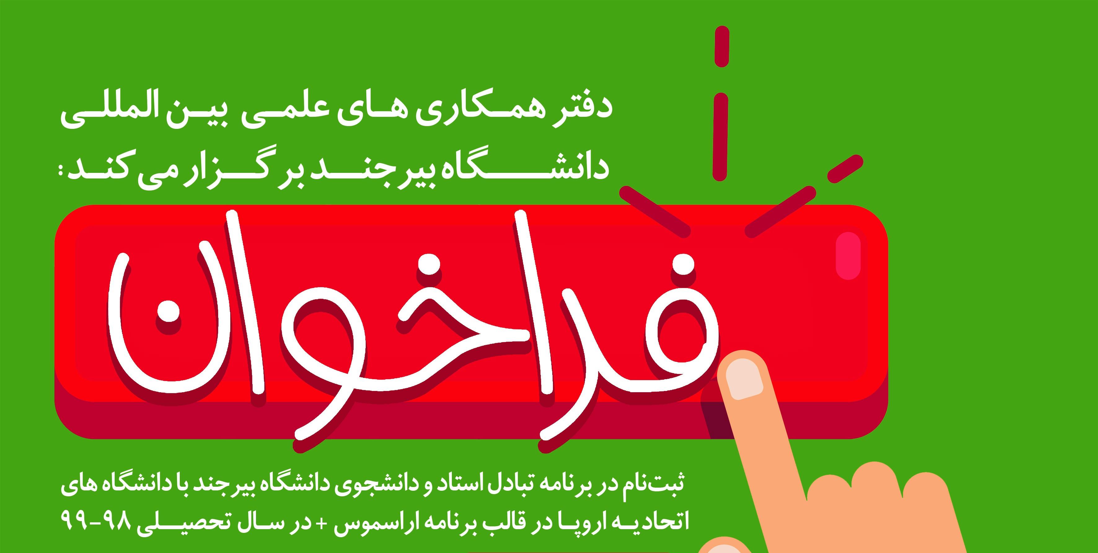 فراخوان ثبتنام در برنامه تبادل استاد و دانشجوی دانشگاه بیرجند با دانشگاههای اتحادیه اروپا در قالب اراسموس+ ۰۲ آذر ۱۳۹۸ | ۲۰:۴۳ کد : ۵۴۵۹ اطلاعیه ها اخبار برگزیده اخبار ستادی ارسال به دیگران نام شما ایمیل شما ایمیل دریافتکننده ارسال انصراف تعداد بازدید:۸۹۳۵ به همت دفتر همکاریهای علمی و بین المللی دانشگاه بیرجند ثبتنام در برنامه تبادل استاد و دانشجوی دانشگاه بیرجند با دانشگاههای اتحادیه اروپا در قالب اراسموس+ آغاز شد.