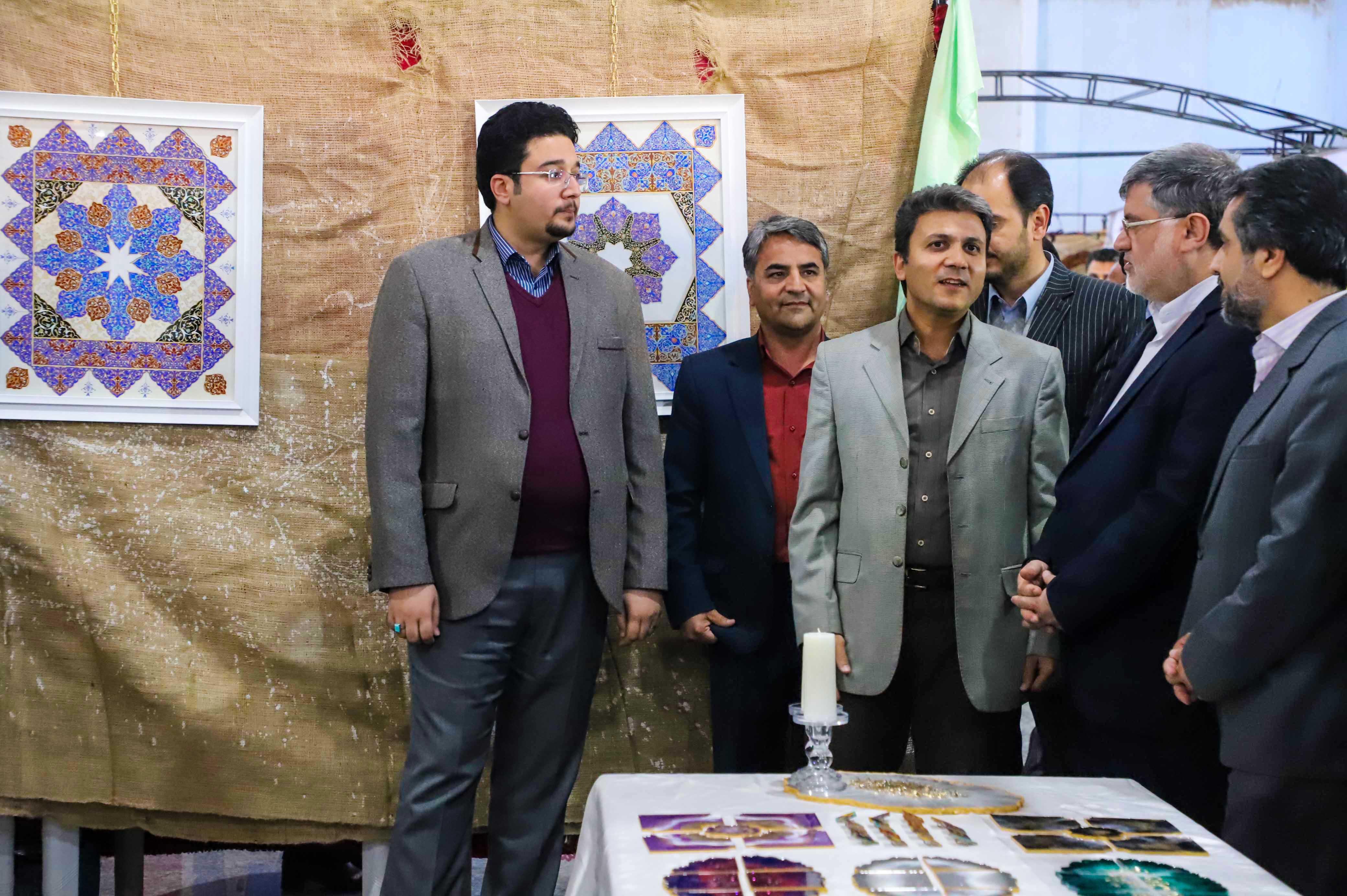 بازدید استاندار و جمعی از مسئولان استان و دانشگاه از غرفه دانشکده هنر در نمایشگاه صنایع دستی خراسان جنوبی