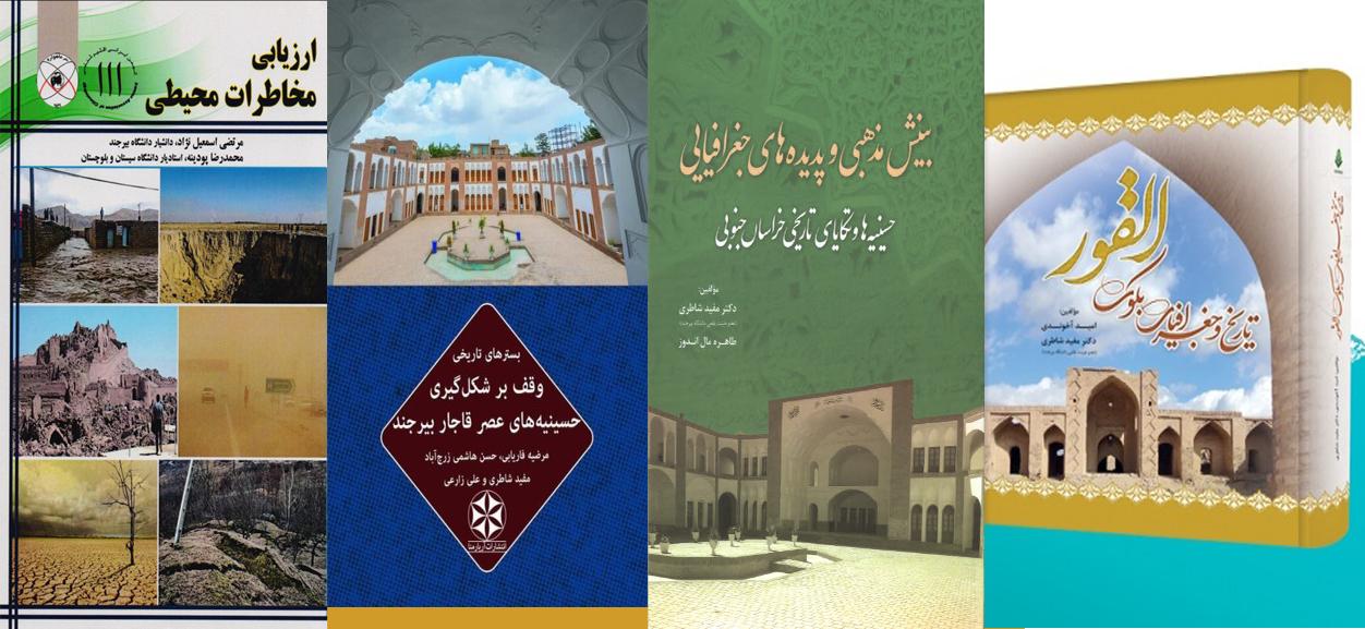 به گزارش روابط عمومی دانشگاه بیرجند، کتاب "تاریخ و جغرافیای بلوک القور" تالیف دکتر مفید شاطری، عضو هیات علمی گروه آموزشی جغرافیا توسط انتشارات چهاردرخت، کتاب "جستاری در احوال و آثار مفاخر خراسان جنوبی" نوشته دکتر زهرا علیزاده بیرجندی، هیات علمی گروه آموزشی تاریخ، با همکاری اداره کل فرهنگ و ارشاد اسلامی خراسان جنوبی و توسط انتشارات فکربکر، کتاب "بسترهای تاریخی وقف بر شکلگیری حسینیههای عصر قاجار بیرجند" محصول پژوهش مرضیه فاریابی، حسن هاشمی زرجآباد، مفید شاطری و علی زارعی توسط انتشارات آریارمنا و کتاب "ارزیابی مخاطرات محیطی" تالیف دکتر مرتضی اسمعیل نژاد، دانشیار گروه آموزشی جغرافیا دانشگاه بیرجند و دکتر محمدرضا پودینه عضو هیات علمی دانشگاه سیستان و بلوچستان توسط انتشارات ماهواره چاپ و منتشر شد.