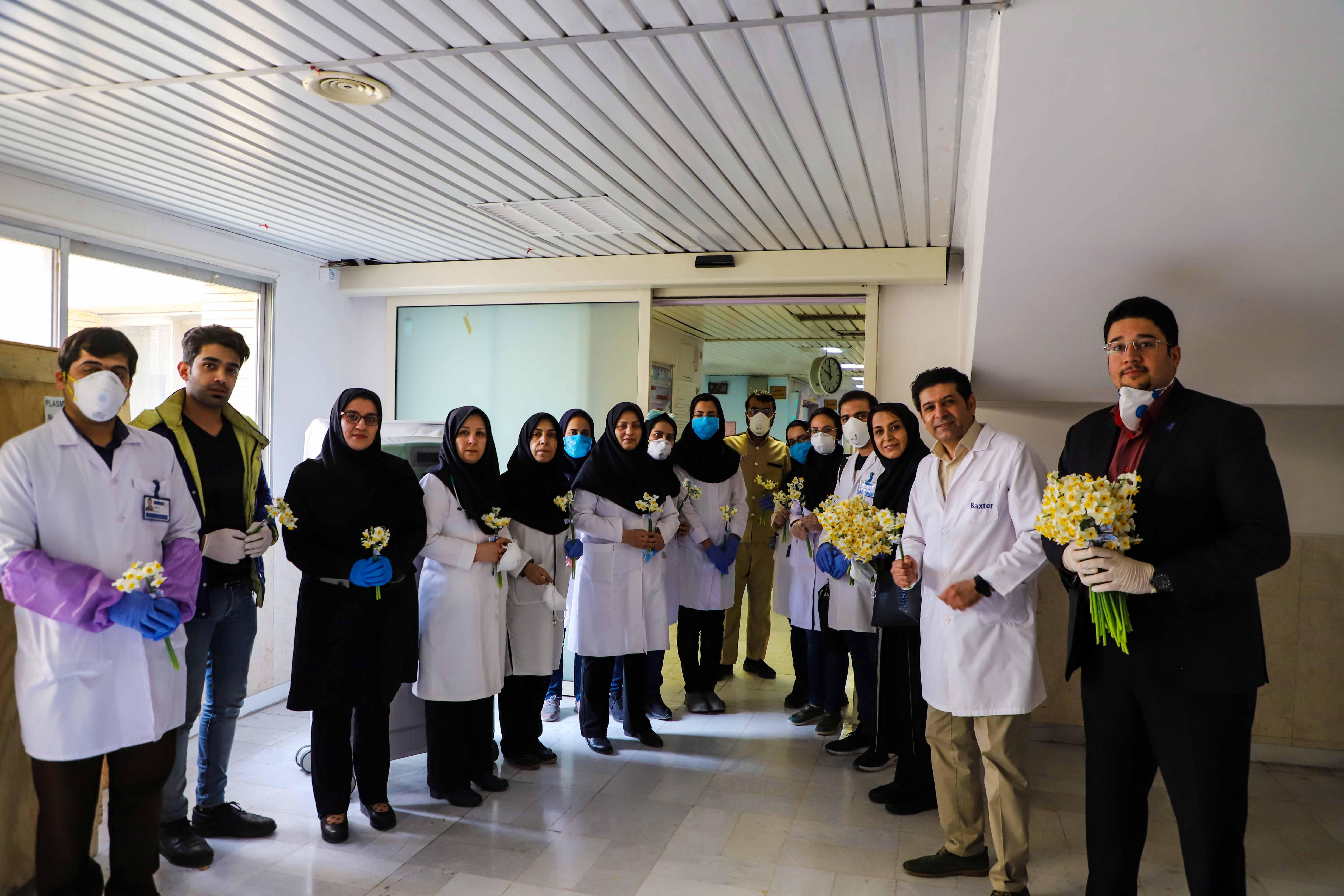 اهدای گل و خداقوت به پرسنل و بیماران بیمارستان ولیعصر بیرجند
