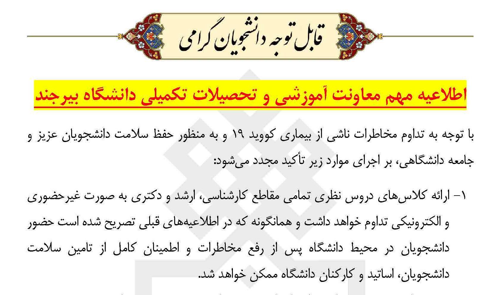اطلاعیه مهم معاونت آموزشی و تحصیلات دانشگاه بیرجند ۲۳ فروردین ۱۳۹۹ | ۱۰:۴۶ کد : ۷۵۴۶ اطلاعیه ها اخبار آموزشی و دانشجویی در ایام کرونا ارسال به دیگران نام شما ایمیل شما ایمیل دریافتکننده ارسال انصراف تعداد بازدید:۱۰۴۳۱