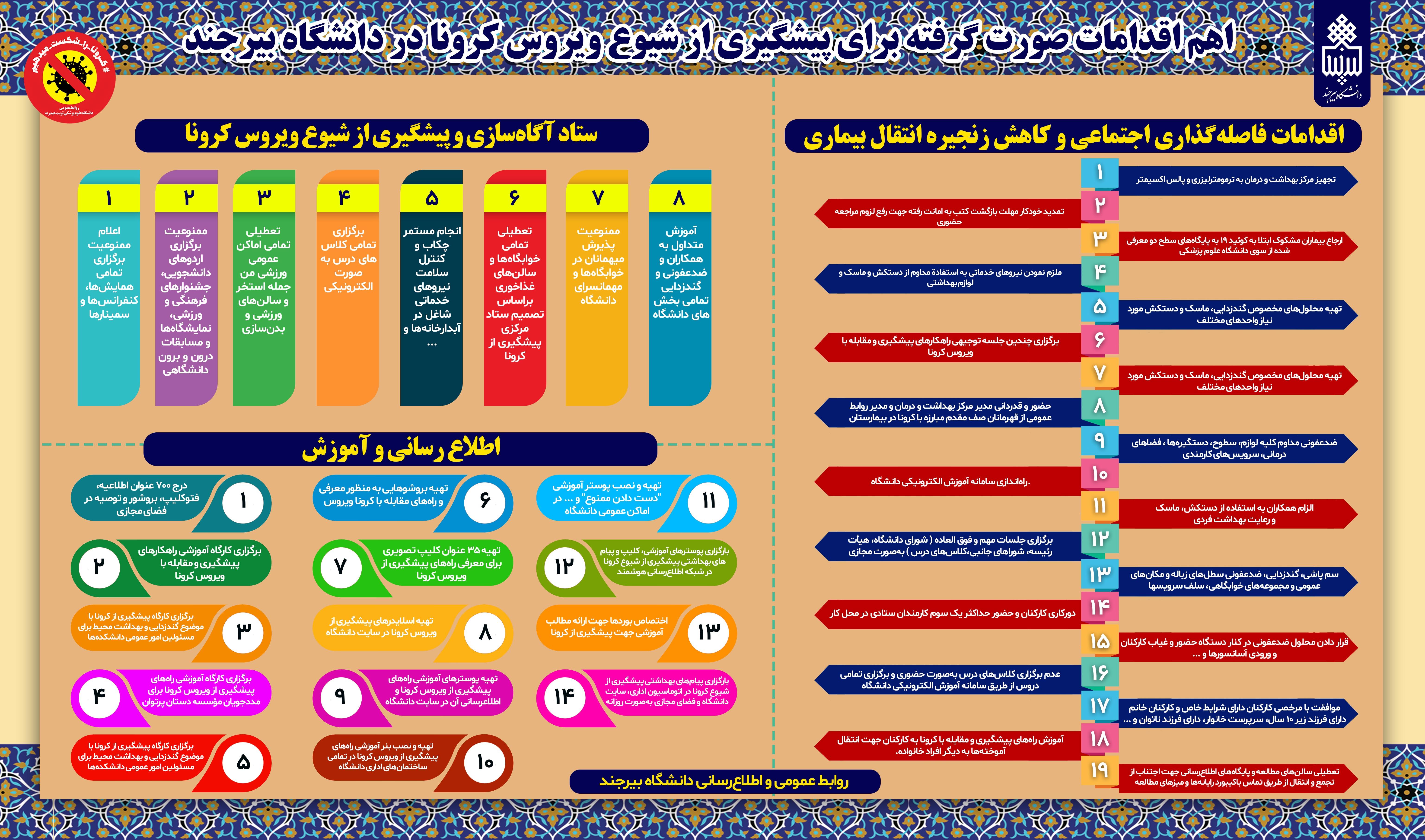 اینفوگرافیک اهم اقدامات صورت گرفته برای پیشگیری از شیوع ویروس کرونا در دانشگاه بیرجند ۲۶ فروردین ۱۳۹۹ | ۱۲:۱۱ کد : ۷۵۷۲ اخبار ستادی ارسال به دیگران نام شما ایمیل شما ایمیل دریافتکننده ارسال انصراف تعداد بازدید:۱۶۲۴۴