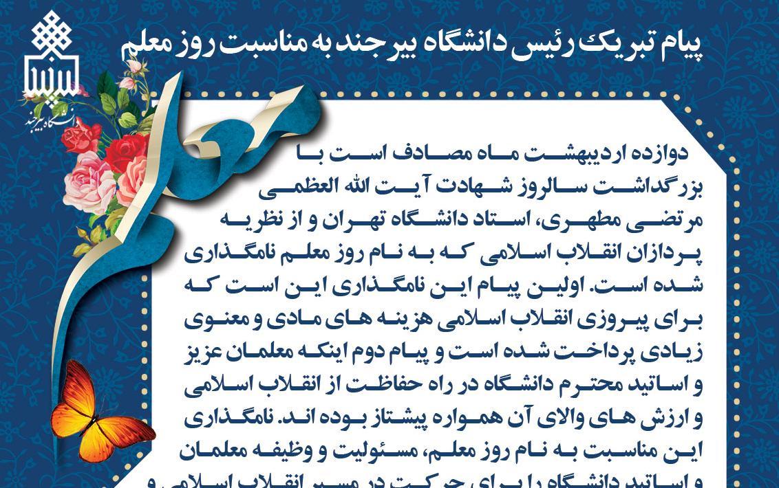 پیام تبریک رئیس دانشگاه بیرجند به مناسبت روز معلم