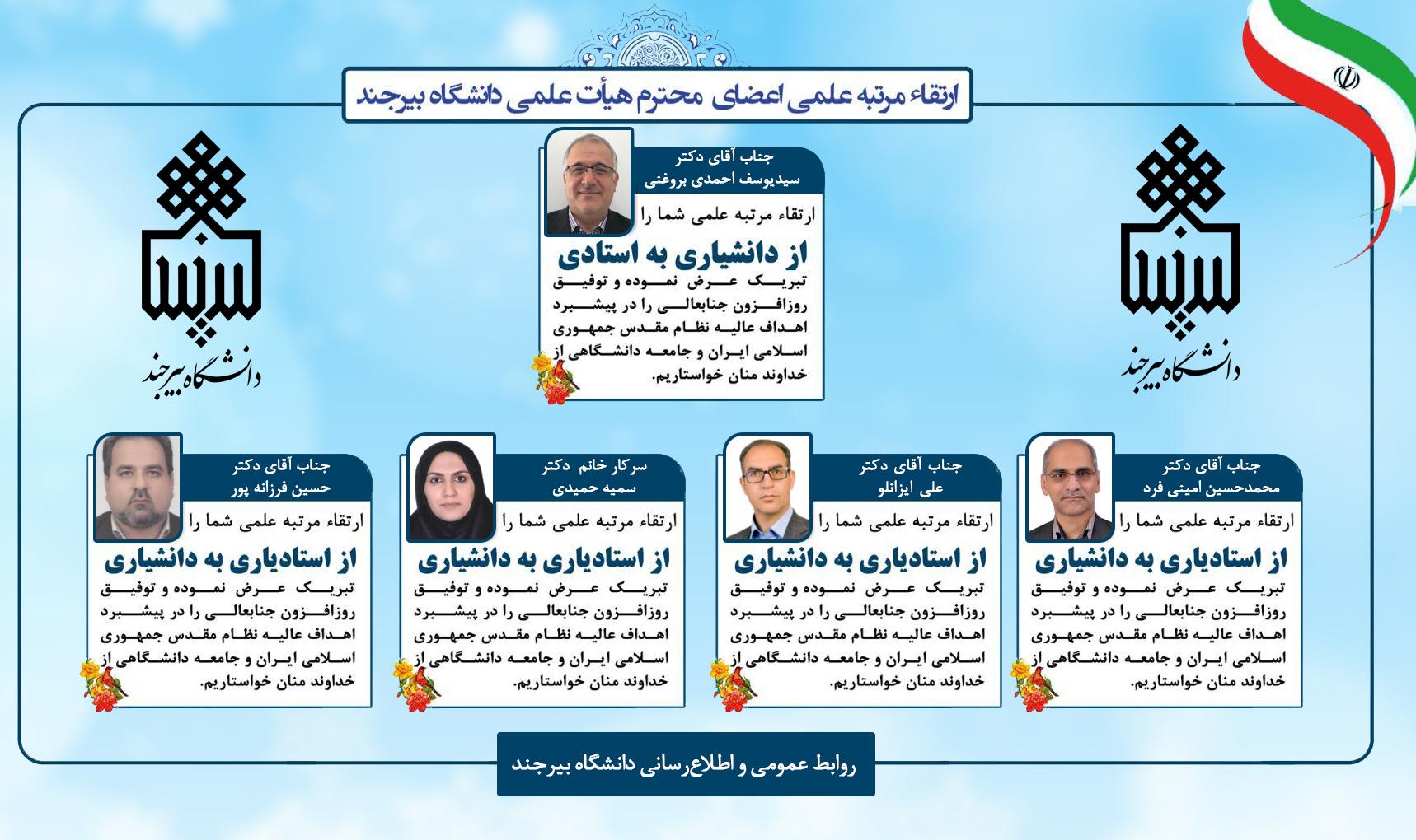 تبریک ارتقاء مرتبه علمی اعضای هیأت علمی دانشگاه بیرجند ۲۲ خرداد ۱۳۹۹ | ۱۴:۳۳ کد : ۸۴۲۲ اخبار برگزیده اخبار ستادی ارسال به دیگران نام شما ایمیل شما ایمیل دریافتکننده ارسال انصراف تعداد بازدید:۹۶۸۸ روابط عمومی و اطلاعرسانی دانشگاه بیرجند؛ ارتقاء مرتبه اعضای محترم هیأت علمی را تبریک عرض نموده و برایشان موفقیتهای روزافزون آرزومند است.