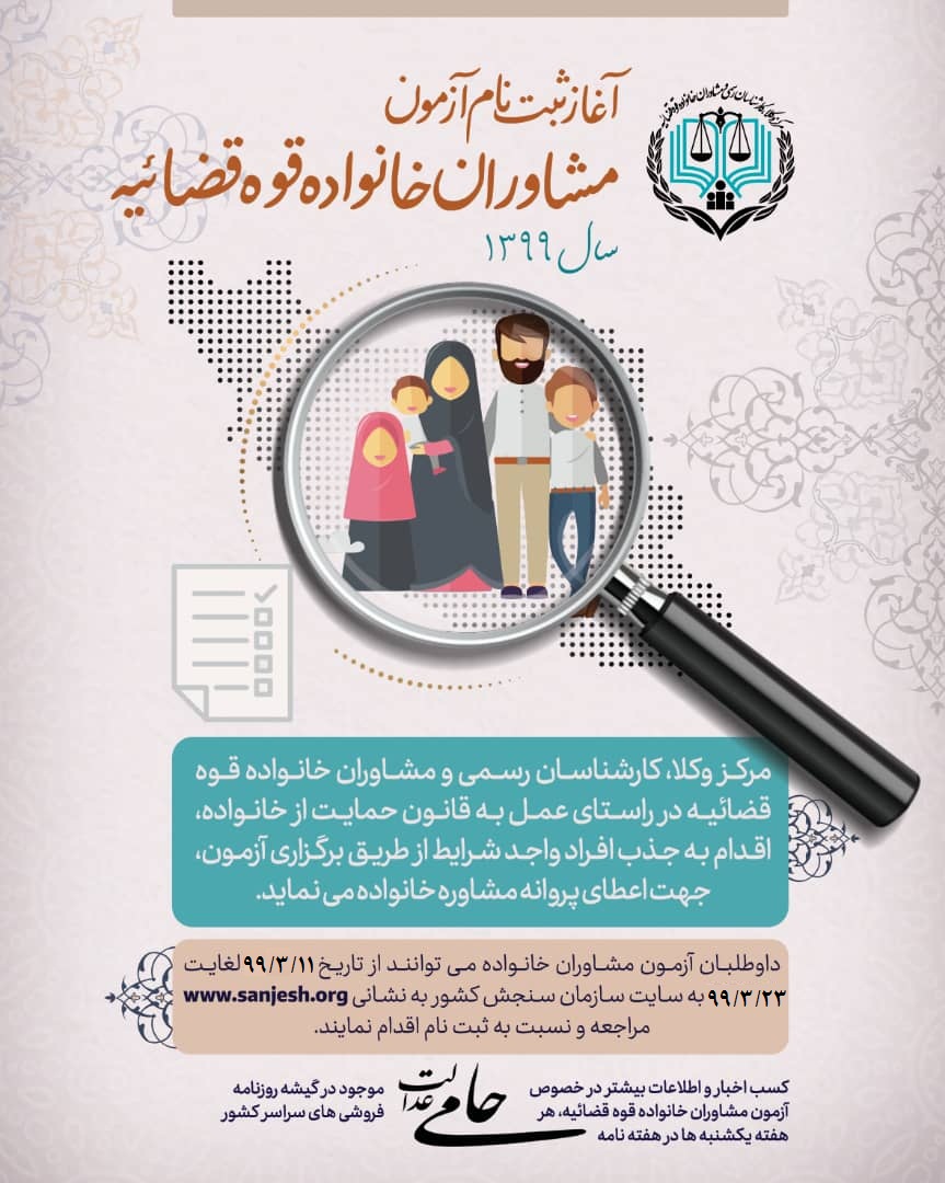 ثبتنام آزمون مشاوران خانواده قوه قضائیه ۲۳ خرداد ۱۳۹۹ | ۱۳:۰۸ کد : ۸۴۲۷ اطلاعیه ها ارسال به دیگران نام شما ایمیل شما ایمیل دریافتکننده ارسال انصراف تعداد بازدید:۶۷۶۲
