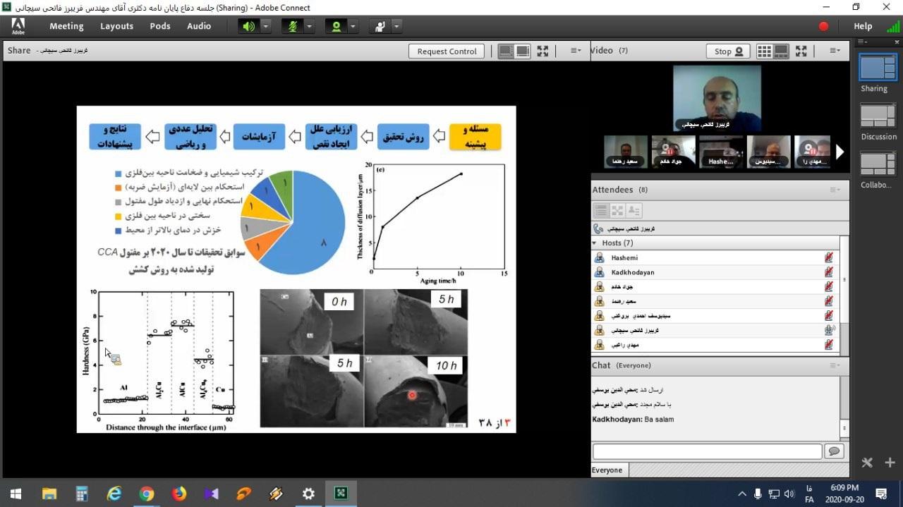 دکتر سعید رهنما و دکتر مهدی راغبی به عنوان اساتید راهنما، دکتر سید حجت هاشمی، دکتر سیدیوسف ‏احمدی بروغنی و دکتر مهران کدخدایان از دانشگاه فردوسی مشهد به عنوان اساتید داور، دکتر کریستف ‏سومیتچ از دانشگاه صنعتی کرات و دکتر جواد خادم به عنوان نماینده تحصیلات تکمیلی در این جلسه ‏حضور داشتند.‏